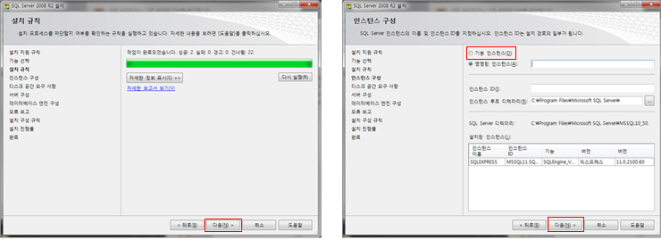 [설치 진행률] 설치가 완료된후. [다음]버튼을 클릭합니다.