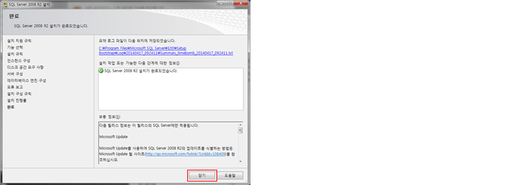 [완료] 정상적으로 SQL Server가 성공적으로 설치가 완료 되었습니다.[닫기]버튼을 클릭합니다.